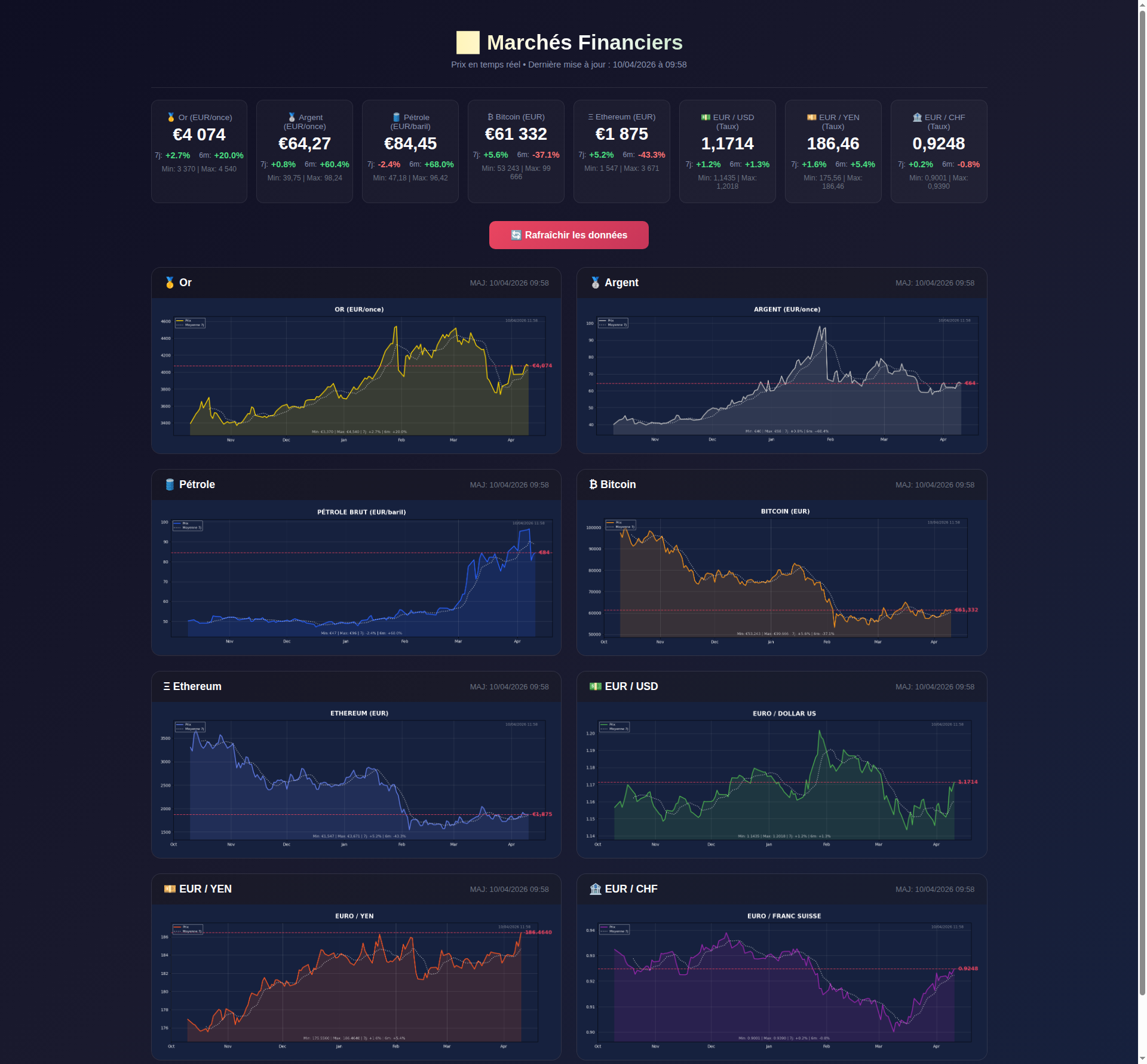 Rapport du 2026-04-10 : Cours des valeurs principales