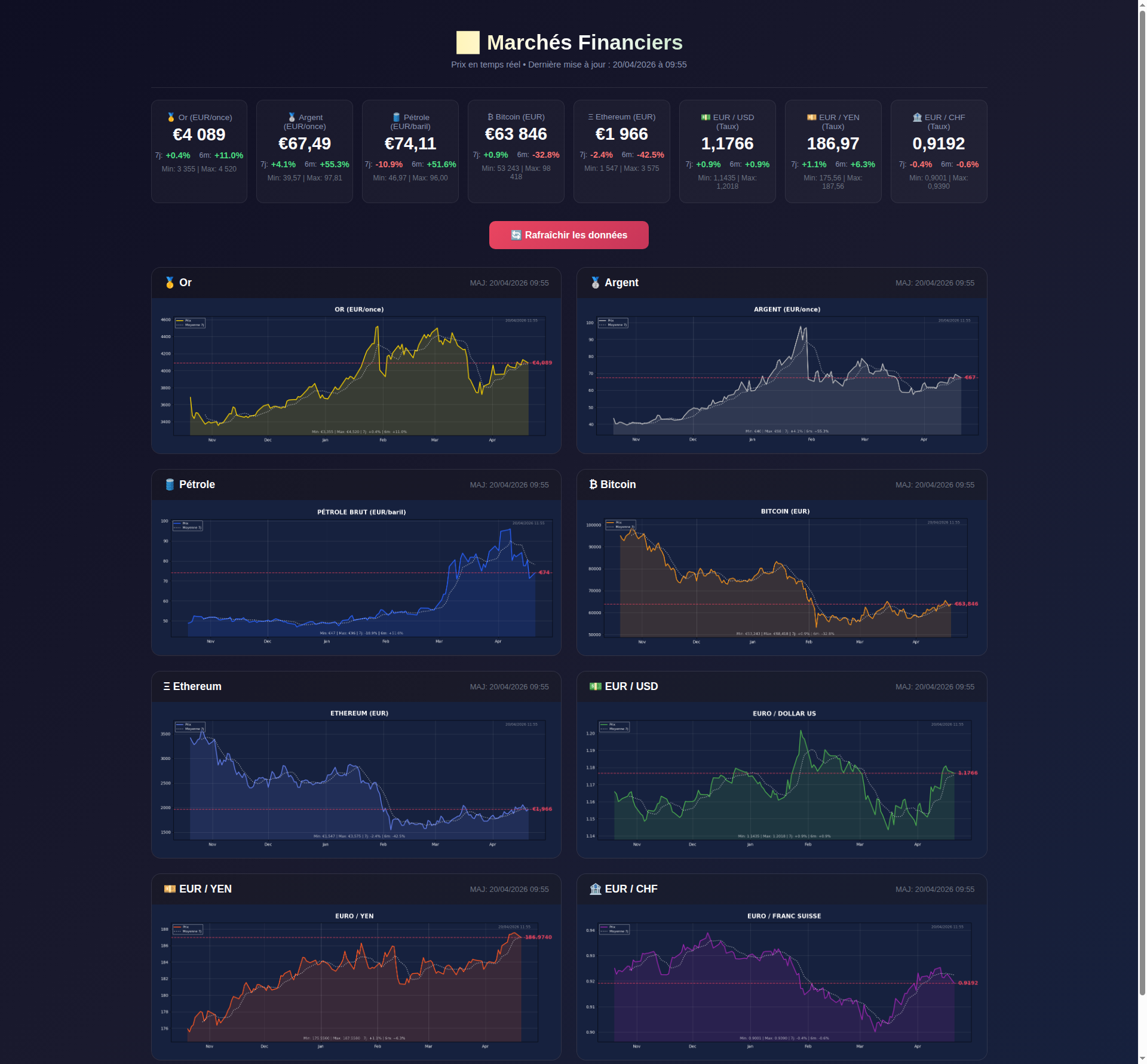 Rapport du 2026-04-20 : Cours des valeurs principales