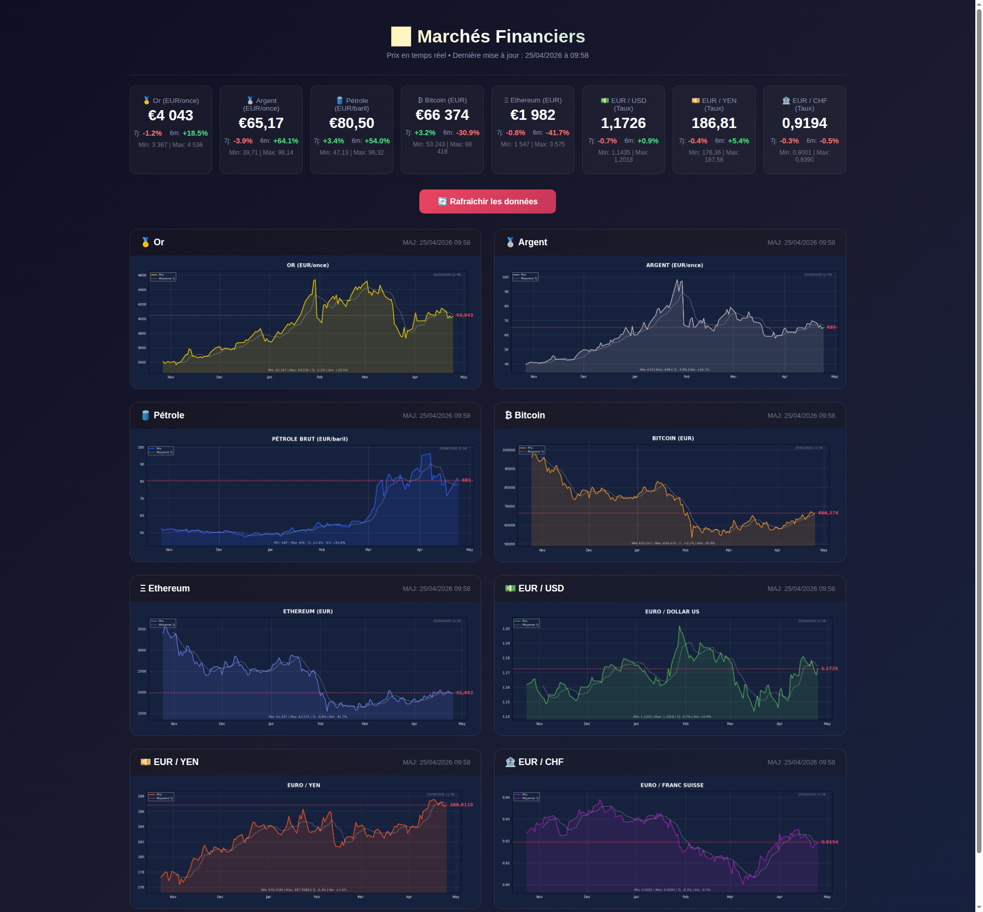 Rapport du 2026-04-25 : Cours des valeurs principales