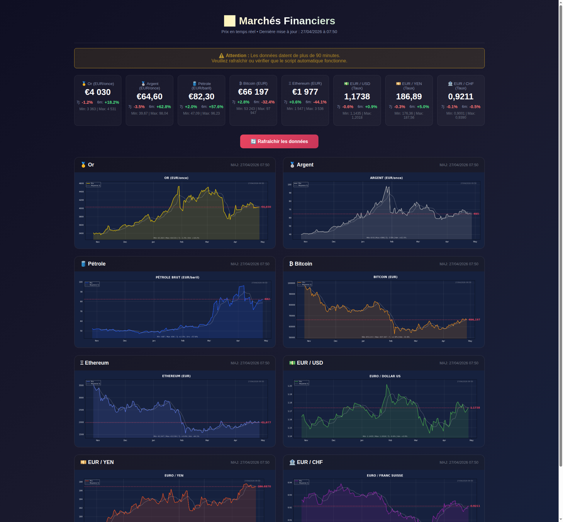 Rapport du 2026-04-27 : Cours des valeurs principales